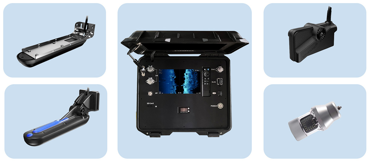 一套完整的水下聲吶搜救系統(tǒng)通常由主機、聲吶探頭、供電單元及輔助配件組成。主機配備高亮顯示屏,支持多畫面同時顯示,操作人員可實時查看不同角度的聲吶圖像,并進行獨立控制。系統(tǒng)集成定位、水溫、水深等關(guān)鍵信息顯示功能,幫助用戶全面掌握作業(yè)環(huán)境。此外,系統(tǒng)支持多種頻率切換,可根據(jù)實際需要調(diào)整探測模式,兼顧遠距離掃描與近距離高分辨率成像。