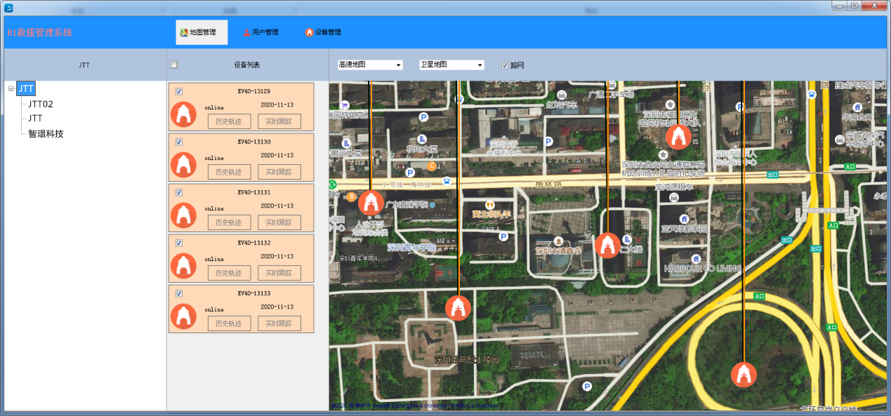 可根據(jù)時(shí)間段查看設(shè)備的歷史軌跡,或者實(shí)時(shí)跟蹤設(shè)備的軌跡