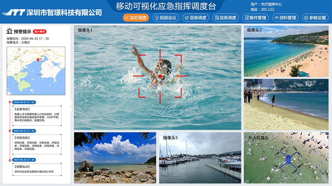 后端收到前端監(jiān)控設(shè)備回傳的數(shù)據(jù)畫(huà)面、圖像畫(huà)面等信息,后端可跟前方進(jìn)行視頻會(huì)商,并針對(duì)救援現(xiàn)場(chǎng)狀況迅速派遣救援設(shè)備和救援人員,以最高效的方式降低風(fēng)險(xiǎn)和損失。