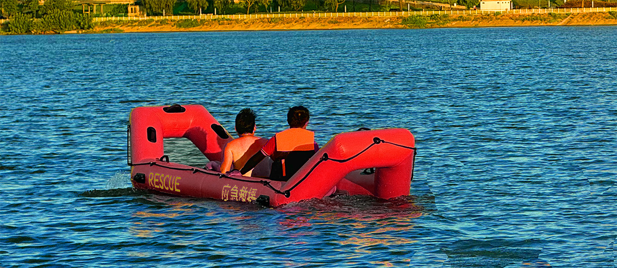 - 筏體采用充氣式設(shè)計(jì),兩端設(shè)置開放式鏤空救援空間,筏身兩側(cè)粘貼反光帶